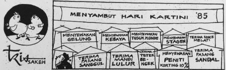 Pada tahun 1974, komik yang terbit pada surat kabar harian Kompas ini menceritakan tentang perayaan Hari Kartini yang ternyata hanya sebatas peragaan busana adat saja. Lihat saja muka sang bapak yang sampai kebingungan menanggapi anak perempuannya.